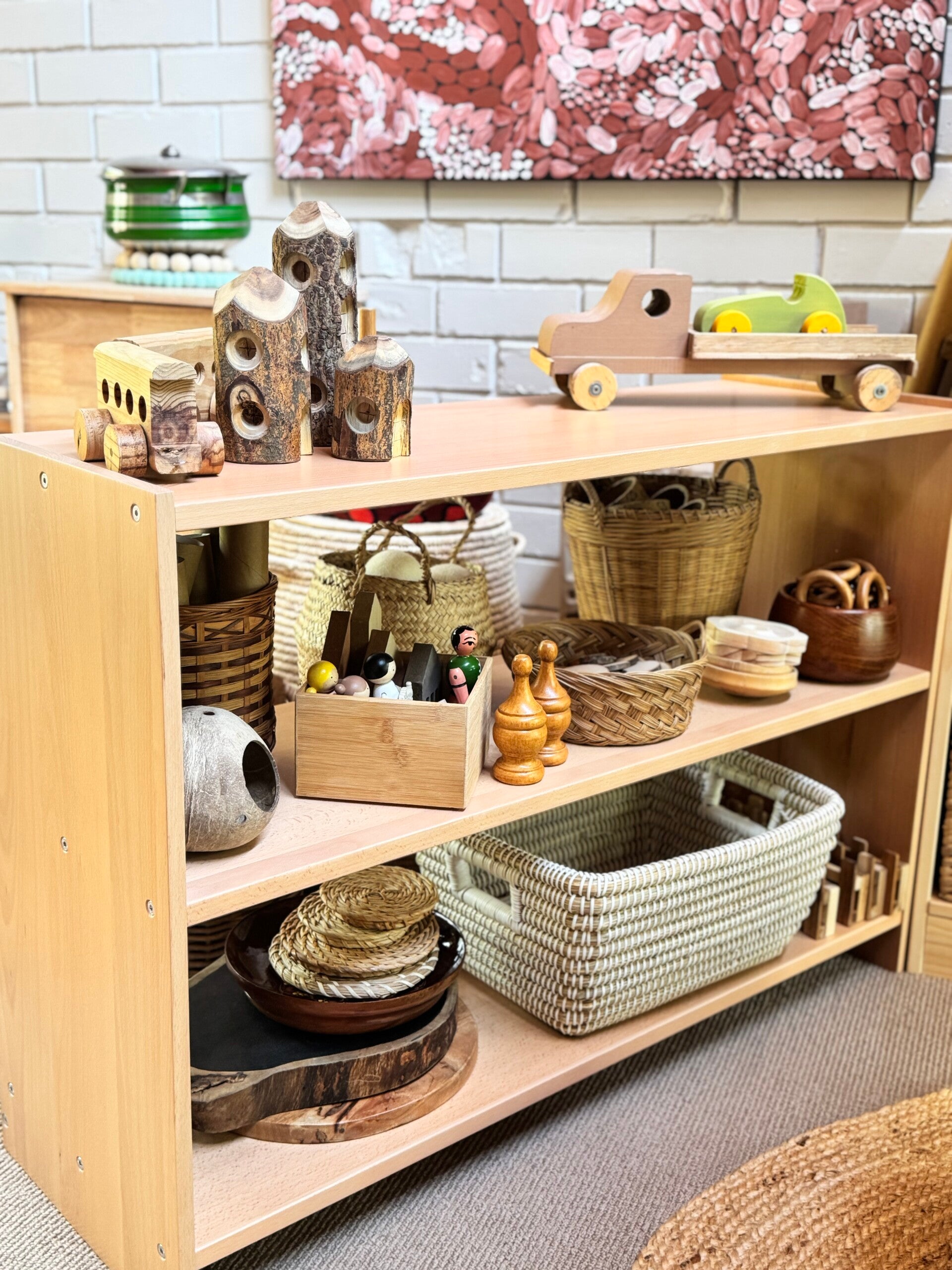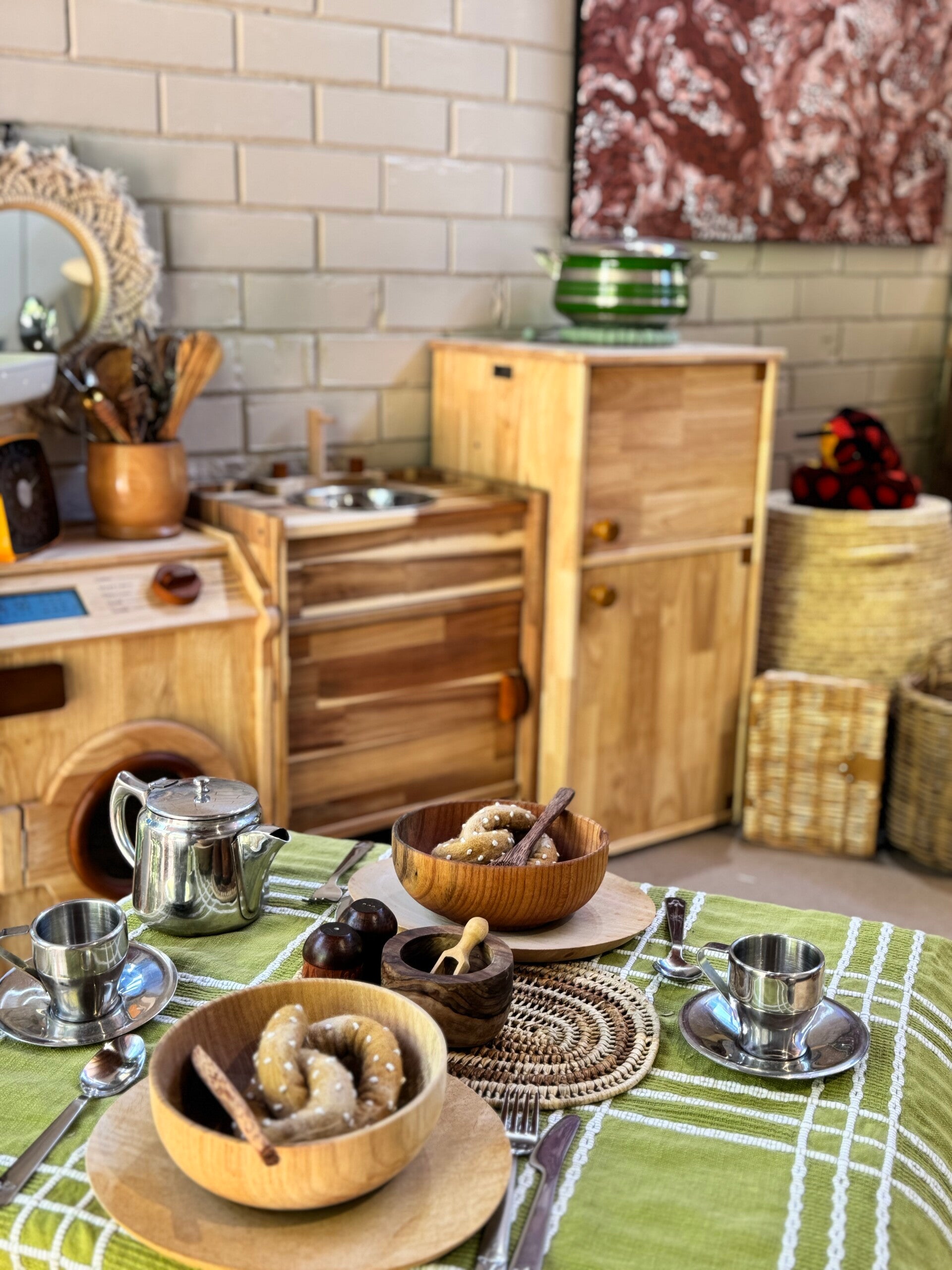 Discover the heart of Bimbimbie Learning Studio in our home corner. Designed with natural materials and a neutral colour palette, this space promotes a calming and inviting atmosphere for children to explore and create.